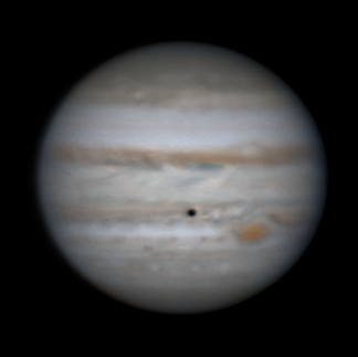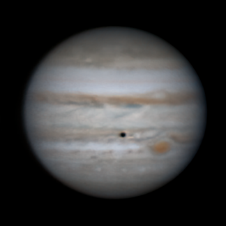 I was able to take a series of 41 images of Jupiter late on the 30th of September and early on the 1st of October. Each image was created from a 90-second video capture over the course of about 70 minutes. I processed all of these and produced the video shown below. Io and the shadow of that moon are clearly visible, with Io especially visible as it nears the limb of Jupiter and passes over the top of the Great Red Spot.